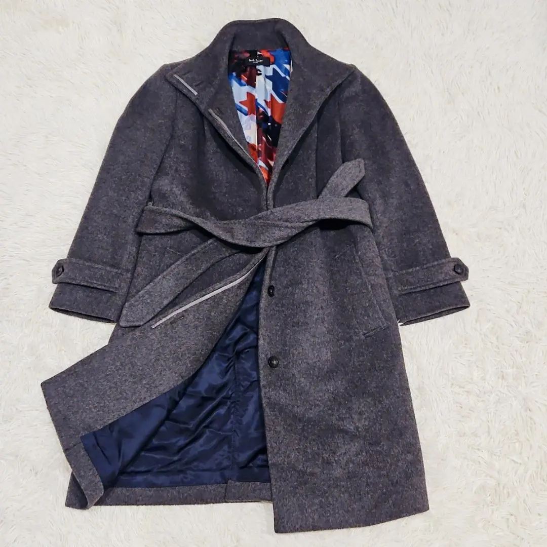 美品 ポールスミス ステンカラーコート メルトンコート ウール ベルト 柄