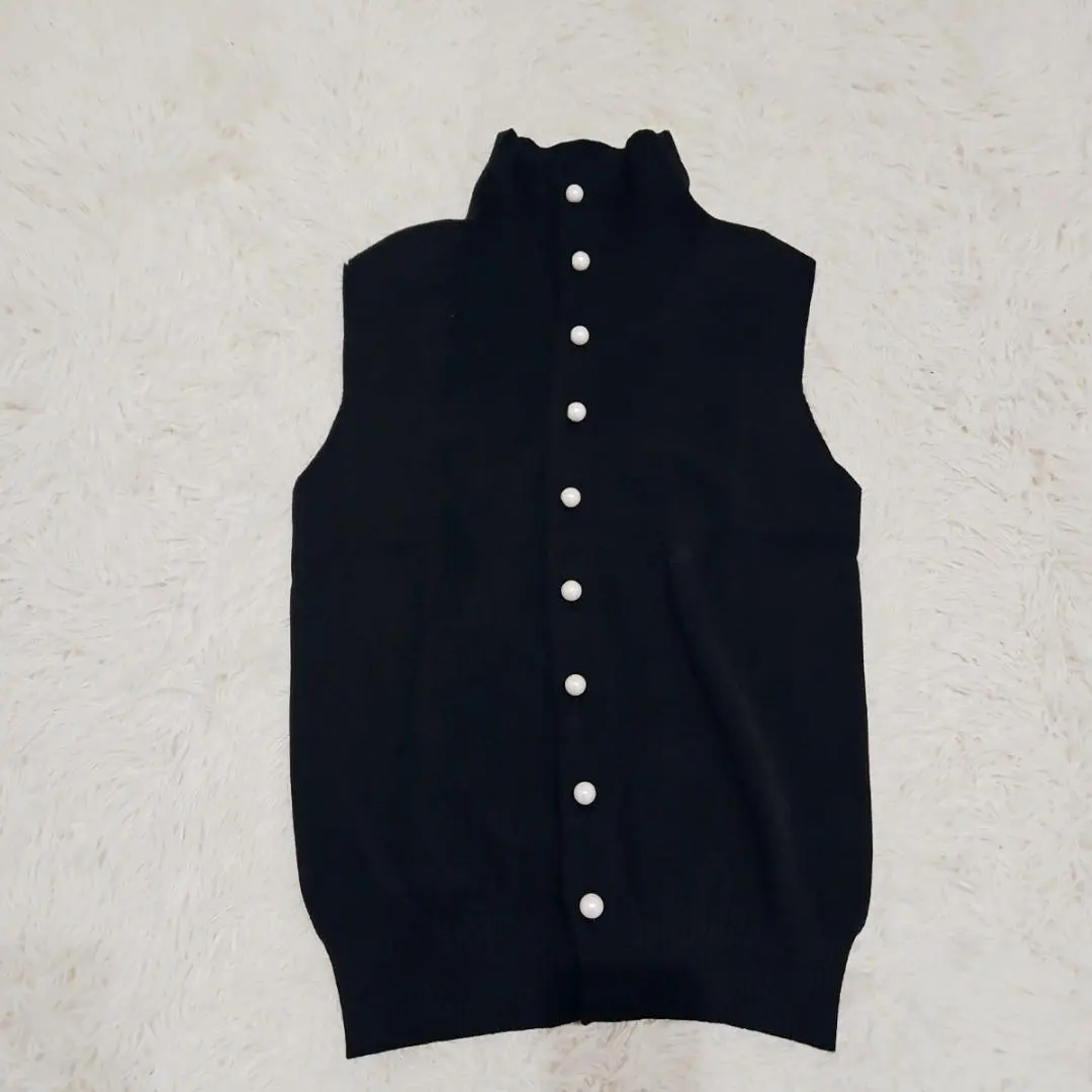 美品 CABaN キャバン ニット ベスト カシミヤ パール ハイネック 黒