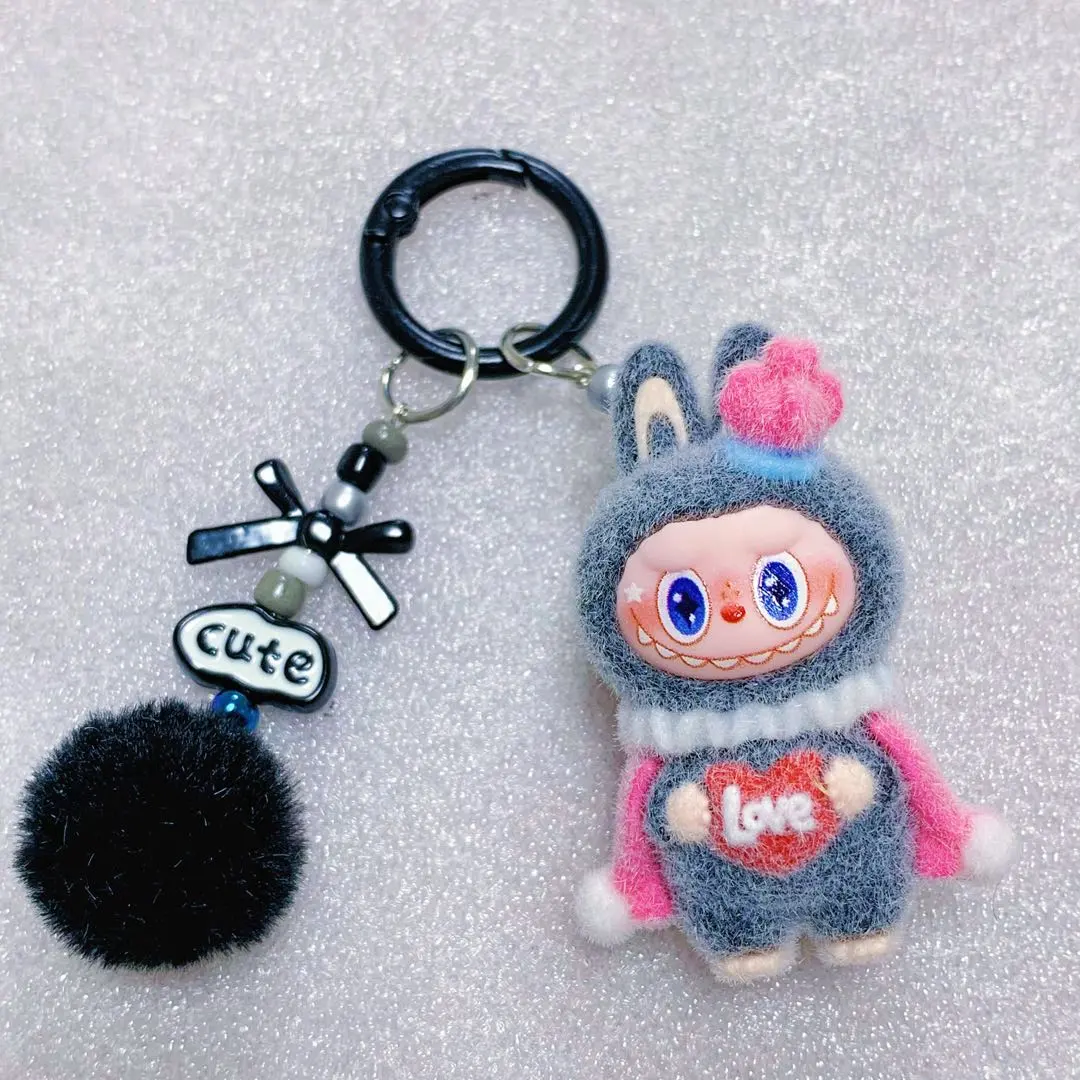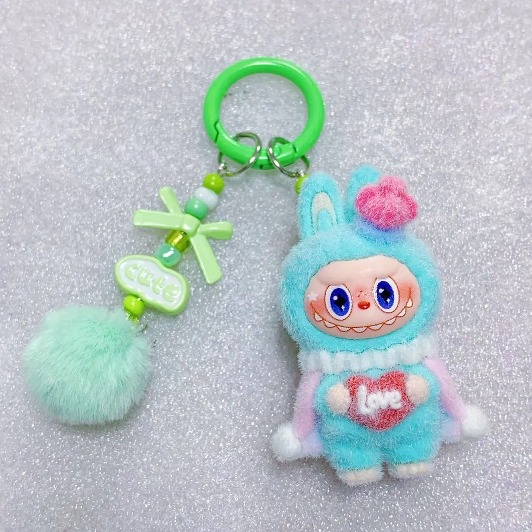 ふわふわ可愛い♡ラブブ キーホルダー ✨白い×水色 ミクスカラー 1個