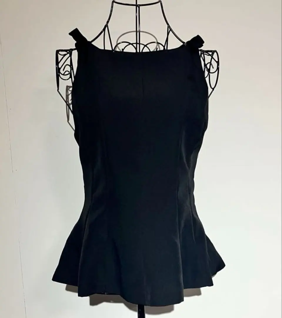 レディース 肩リボン ノースリーブ ペプラム トップス