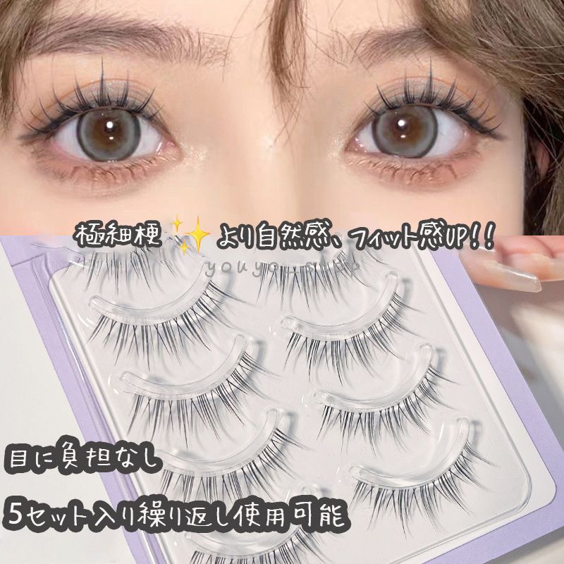 つけまつげ ナチュラル 透明軸手作りつけまつげ 自宅でDIY 自然なつけまつげ デイリーメイク用5ペア つけまつ毛