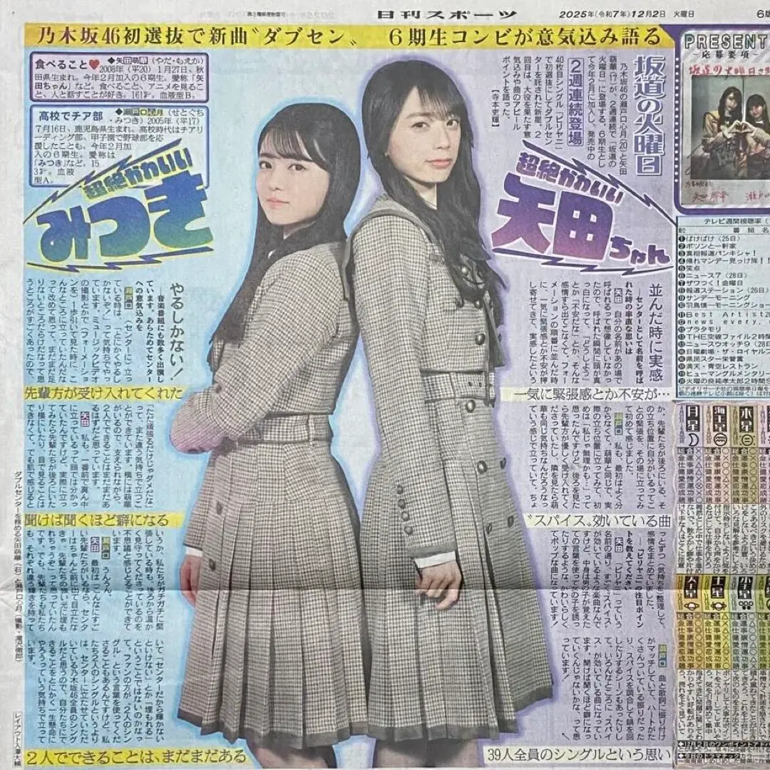 2025年12/2 日刊スポーツ 坂道の火曜日 乃木坂46 矢田萌華 瀬戸口心月