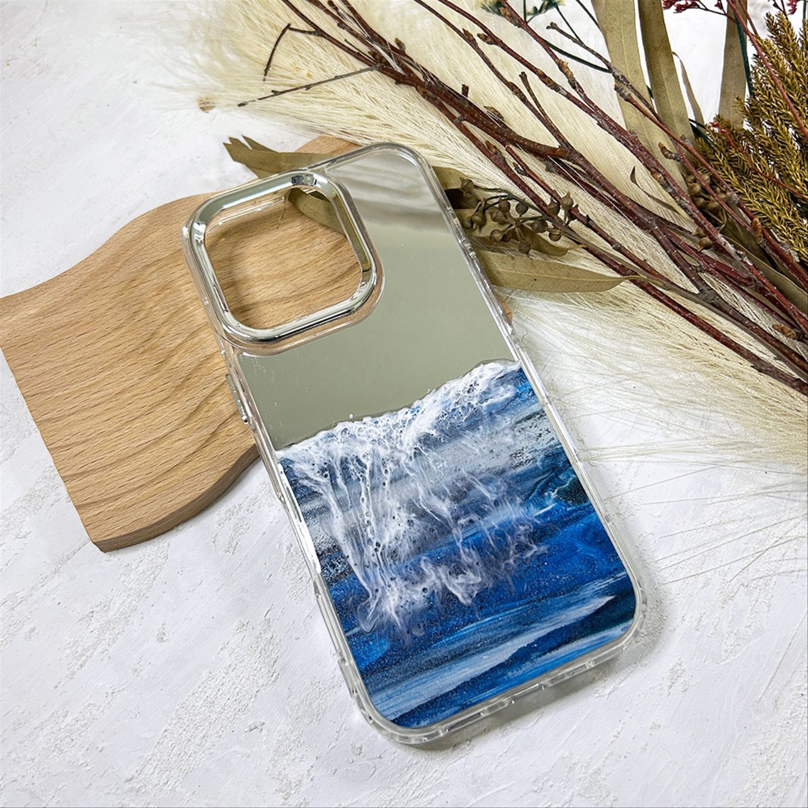 【iPhone16Pro】アルコールインクアートスマホケース(海アート)