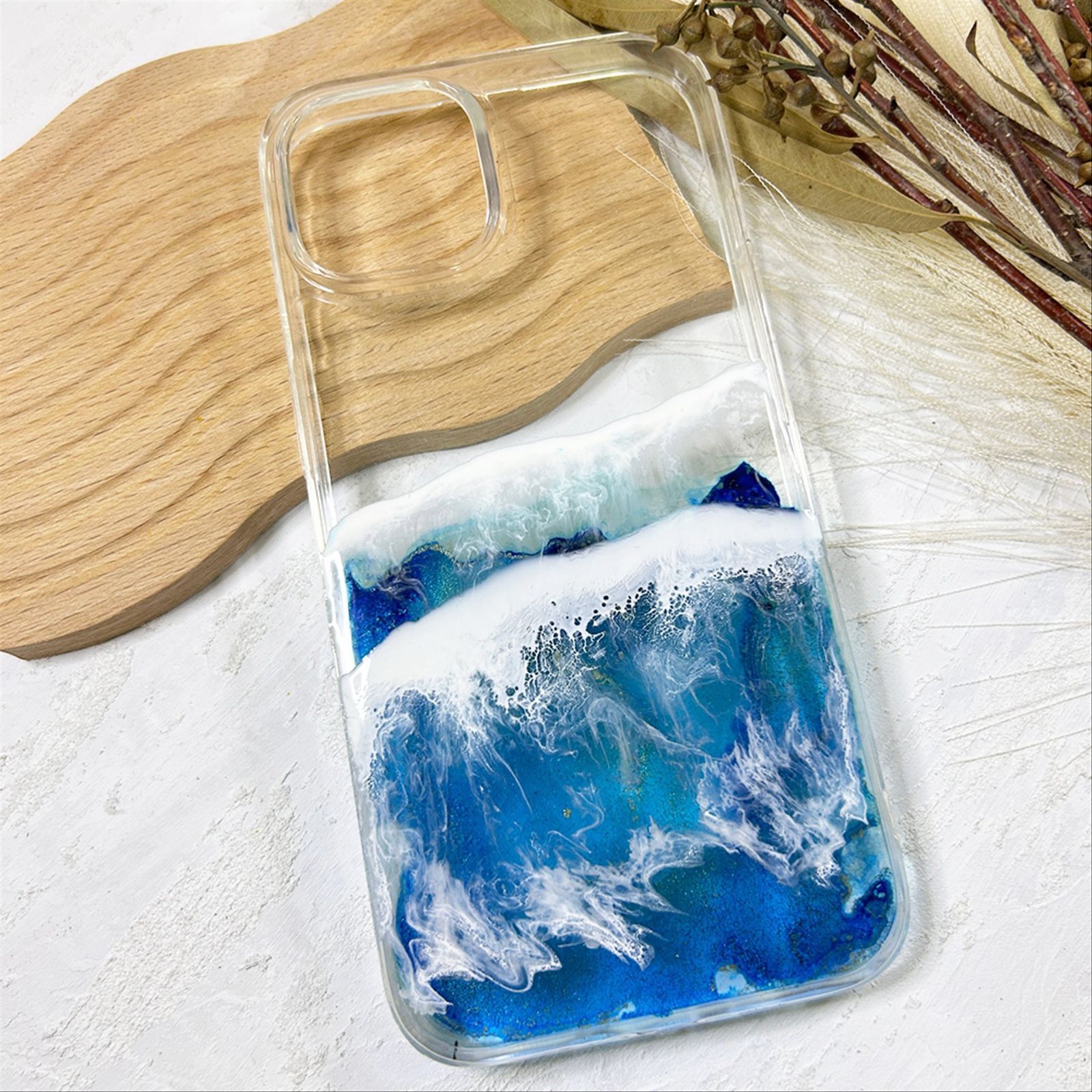 【iPhone13/14】アルコールインクアートスマホケース(海アート)
