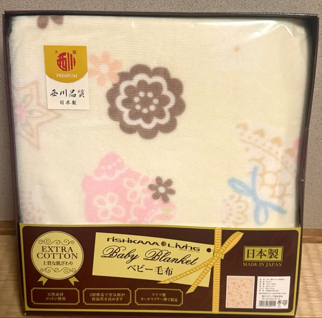 西川 ベビー毛布 日本製 天然素材コットン使用 花柄 箱入り 新品未使用