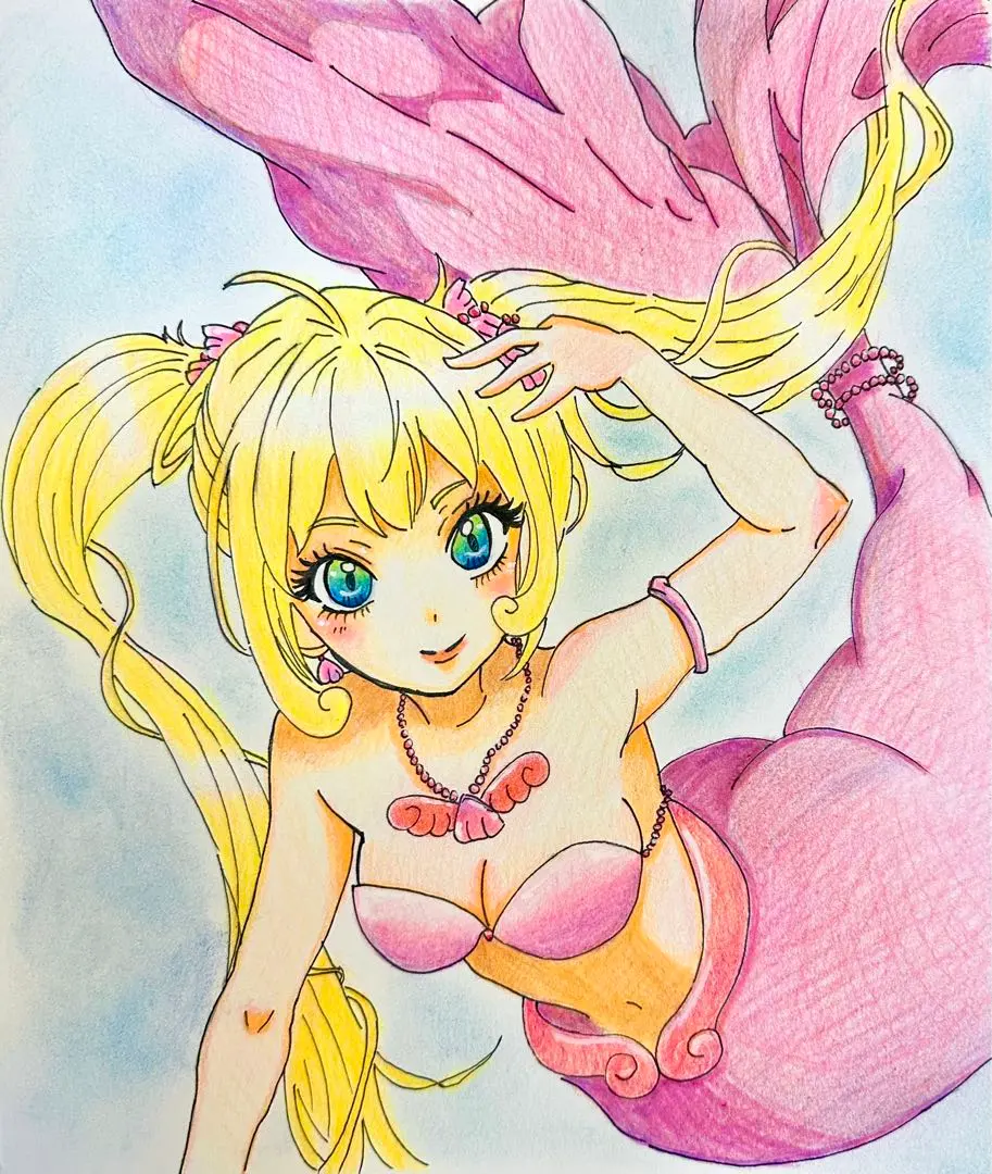 ぴちぴちピッチ マーメイド 七海るちあ イラスト 色紙 ピンク ※ファンアート