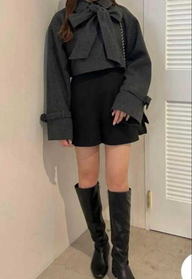 ナイスクラップ ショート丈リボンコート チャコールグレー