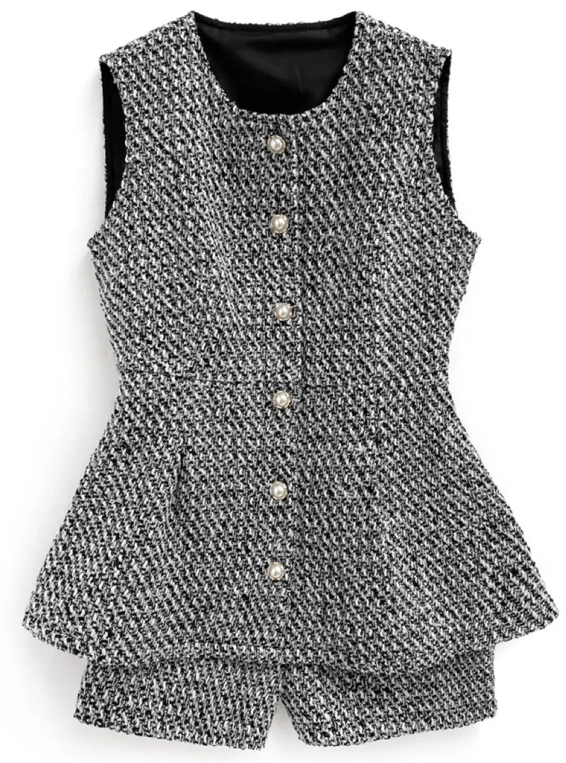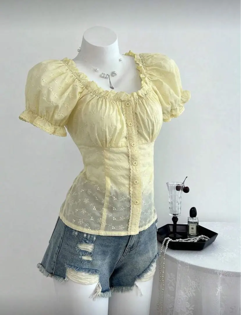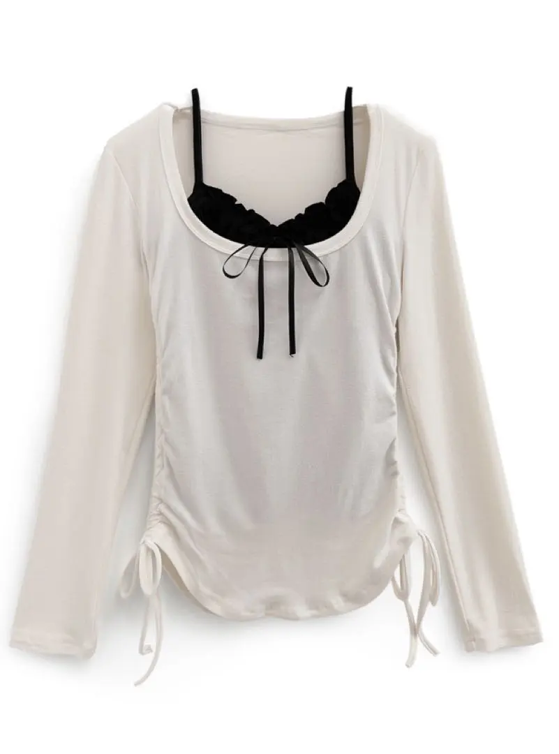 フリルリボンキャミソール×ドロストトップスアンサンブル