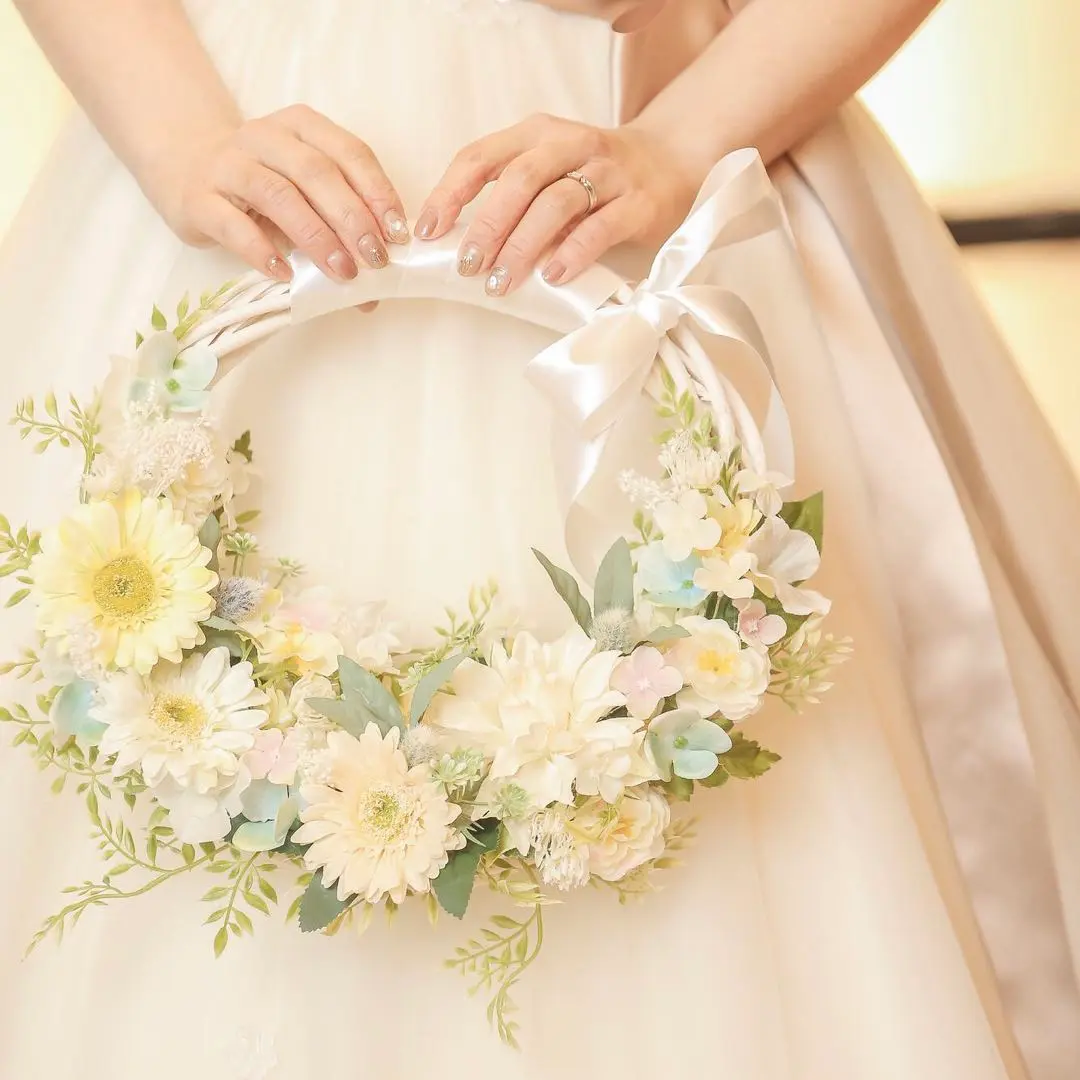 ウェディングリース パステルカラー ブーケ ブートニア リース