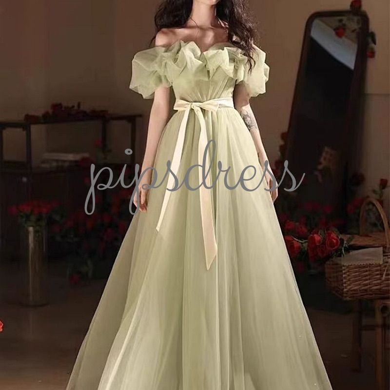 カラードレス M ミントグリーン チュール 前撮り ガーデン 結婚式 二次会 お色直