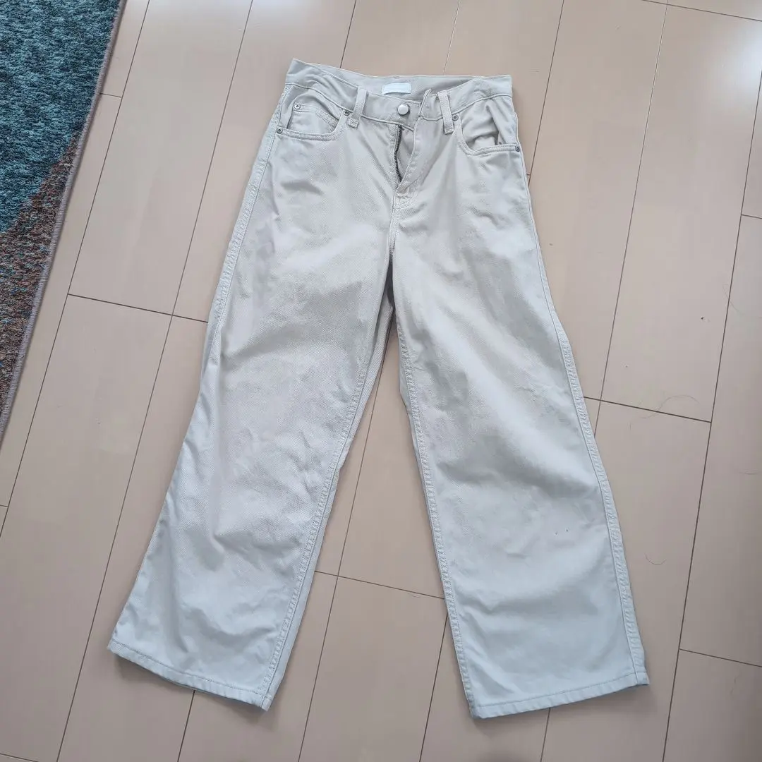 ユニクロパンツ ワイドレッグジーンズ クリーム色