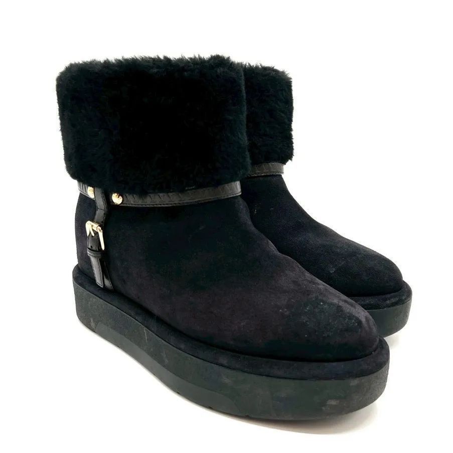 LOUIS VUITTON ルイヴィトン アスペンライン ムートンブーツ 37 1/2 レディース ブラック スエード LV ロゴ ヴィトン ギフト プレゼント
