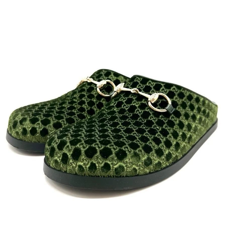 GUCCI グッチ GG スリッポン ベルベット 37 ホースビット レディース サンダル 837130 グリーン ベロア レザー シューズ ギフト プレゼント
