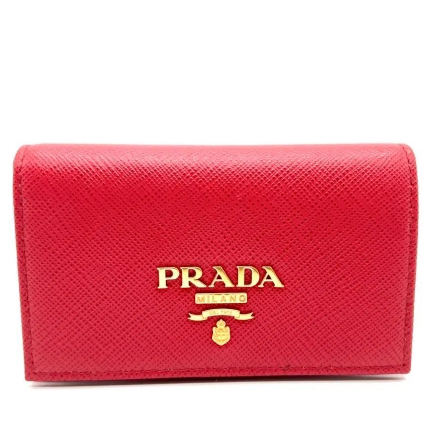 PRADA プラダ サフィアーノ レザー カードケース メタルロゴ レディース ゴールド金具 カーフレザー レディース レッド 赤 ギフト プレゼント
