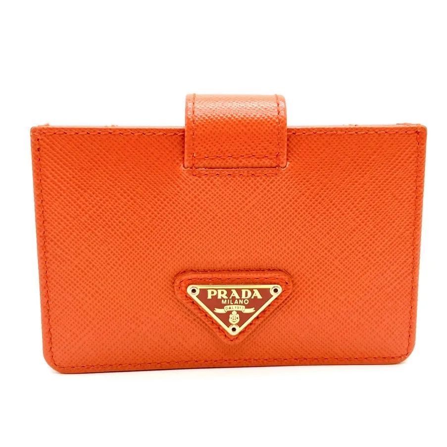 PRADA プラダ サフィアーノレザー カードケース アコーディオン 1MC211 トライアングルロゴ 三角プレート オレンジ カーフレザー レディース ゴールド金具 ギフト プレゼント