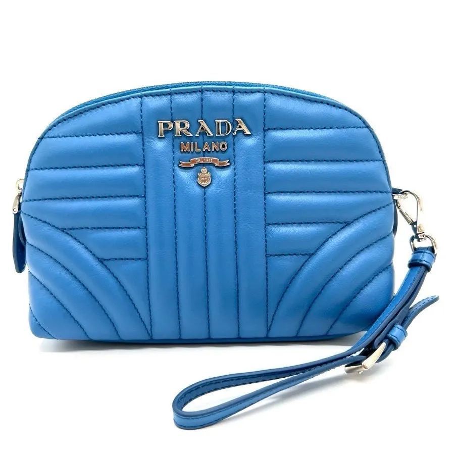 PRADA プラダ レザー ポーチ キルティング ダイヤグラム 1NE010 ライトブルー MARE レディース 小物入れ ギフト プレゼント