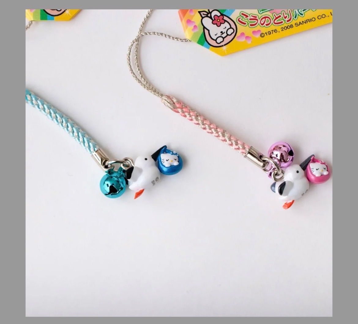 2個セット(ピンク、ブルー)こうのとりキティ コウノトリキティストラップ