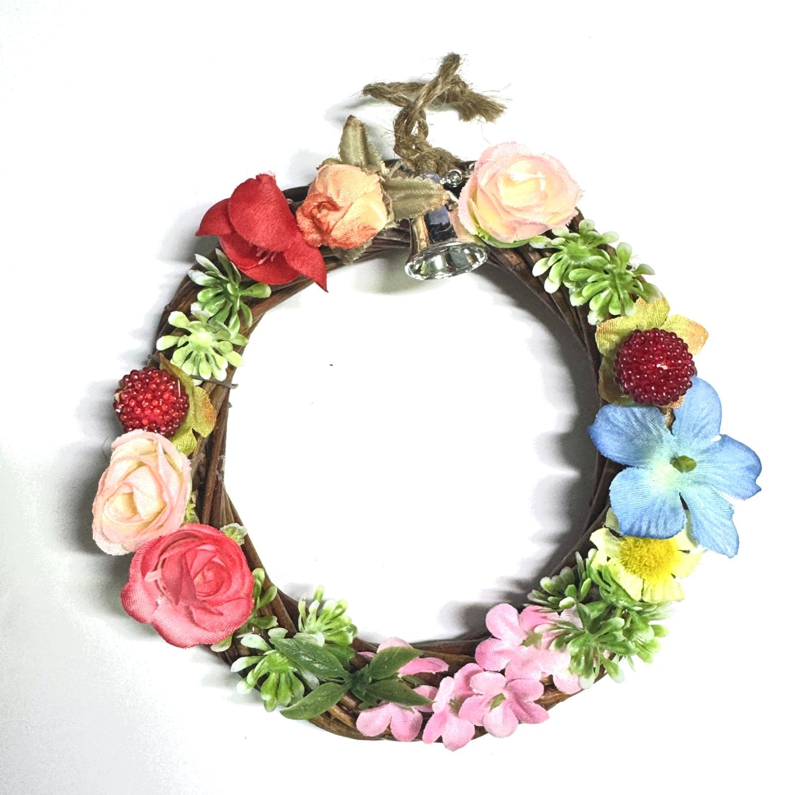 世界に一つだけ 一年中使える リース 12cm-a 玄関飾り ドア飾り 鈴 お花 松ぼっくり ウエルカムリース クリスマスリース