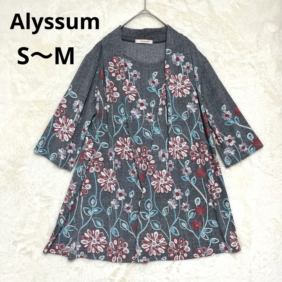 美品 Alyssum S〜M 七分袖 花柄 チュニック ブラウス