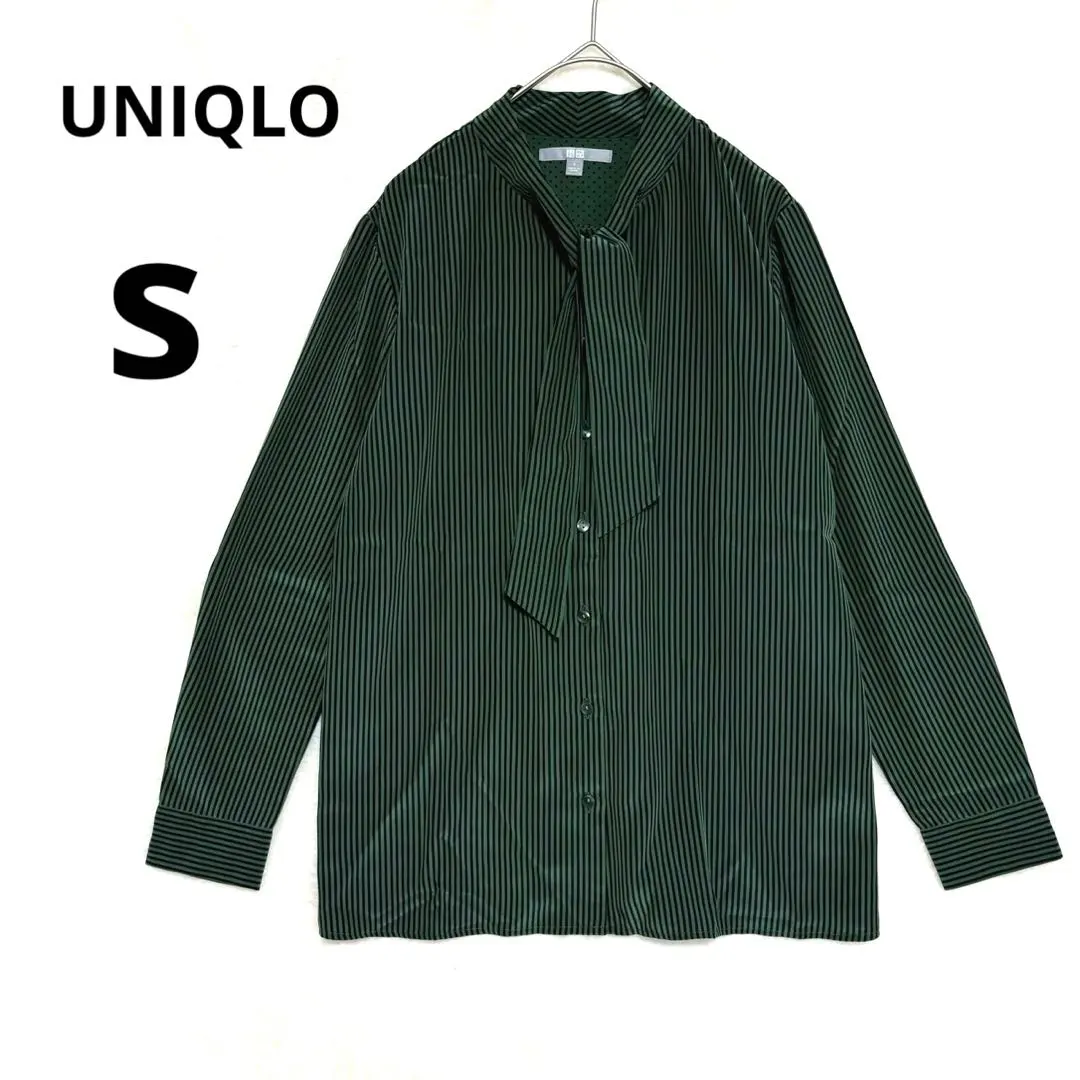 美品 UNIQLO S グリーン シフォンブラウス リボン ボウタイ グリーン