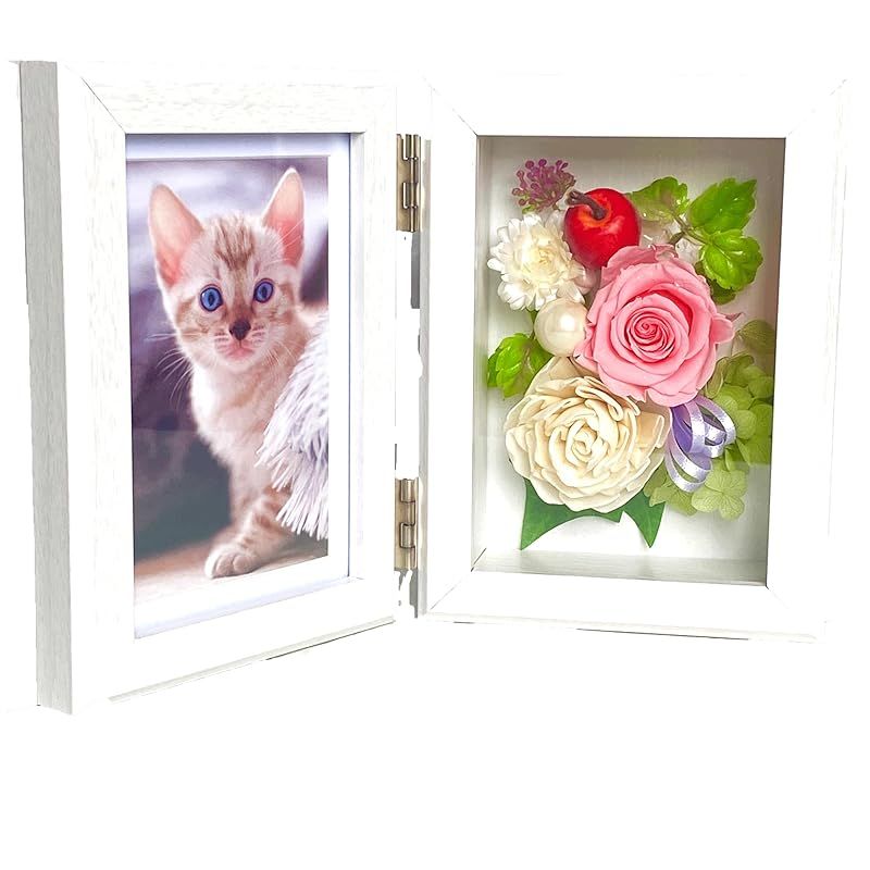 【新品】 プリザーブドフラワー 仏花 ペット お悔み 枯れない 花 プリザーブドフラワー お供え 仏花 ペットロス 虹の橋しおり付き ペット お供え 写真立て 仏壇お供え フォトフレーム サンモクスイ
