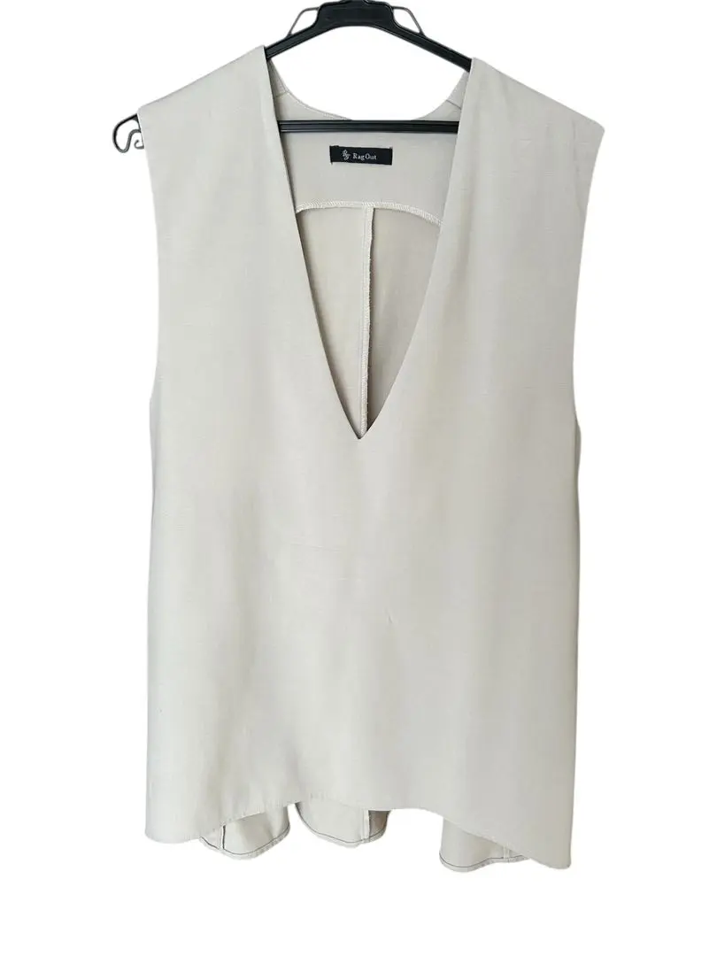 Lサイズライトベージュ Vネック ノースリーブ トップス