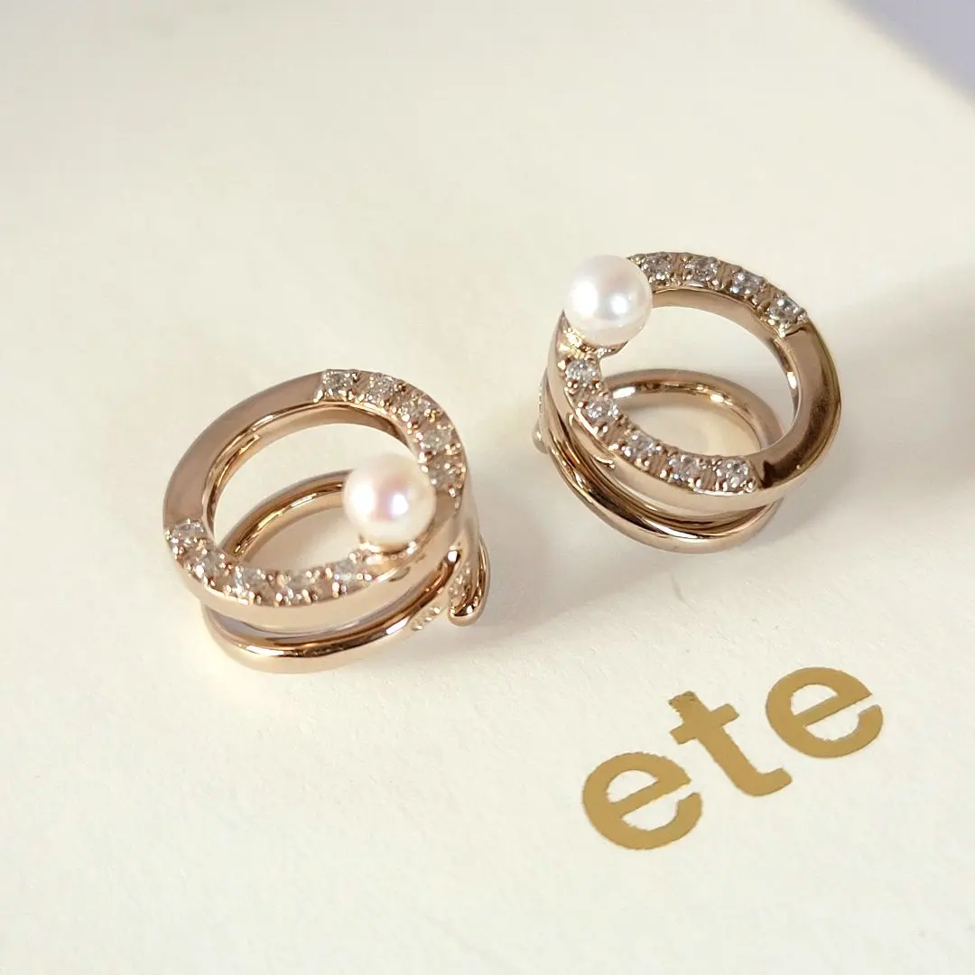 未使用級✨️ ete エテ ビジュー パール ループ イヤリング ミストピンク