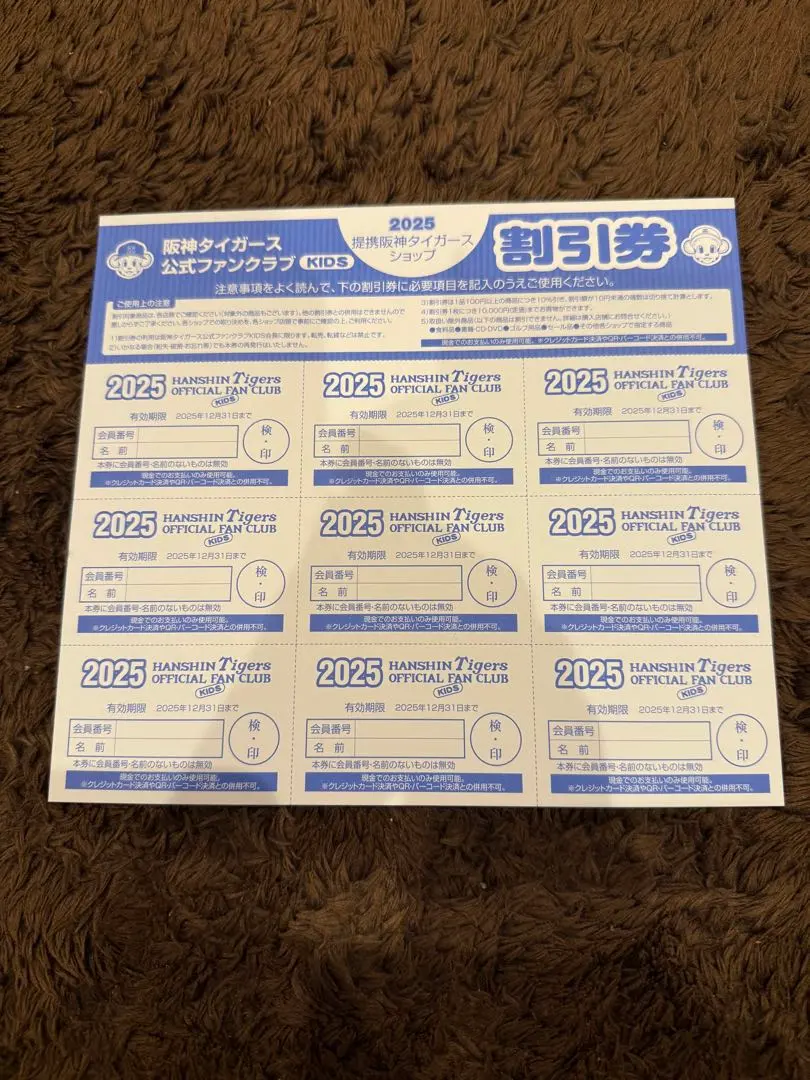 阪神タイガース ファンクラブキッズ 割引券