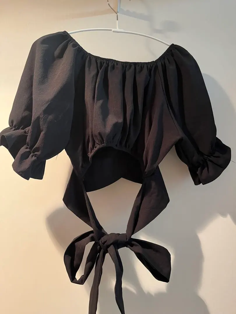 ボリュームスリーブバックリボンショート丈2WAY半袖トップス/短丈ブラウス