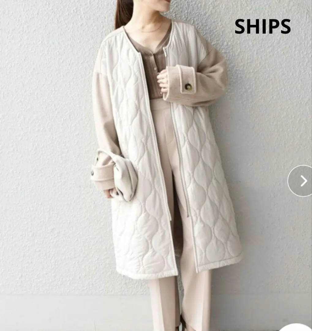 シップス ノーカラーキルティングジップコート ワンサイズ ホワイト ベージュ