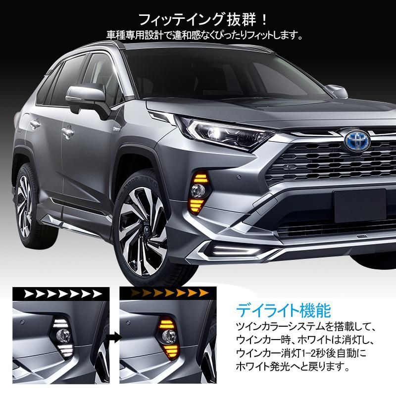 RAV4 50系 デイライト 流れるウインカー機能搭載 LEDランプ LED フォグランプ ホワイト発光/アイスブルー発光 ウィンカー時イエロー流れる発光 視認性向上