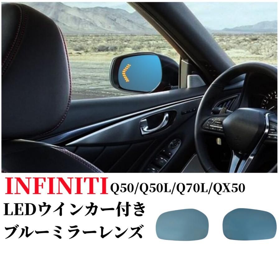 INFINITI(インフィニティ)Q50/Q50L/Q70L/QX50用純正ミラー交換タイプ LEDシーケンシャルウインカー ドアミラー ブルーミラーレンズ ミラーヒーター内蔵