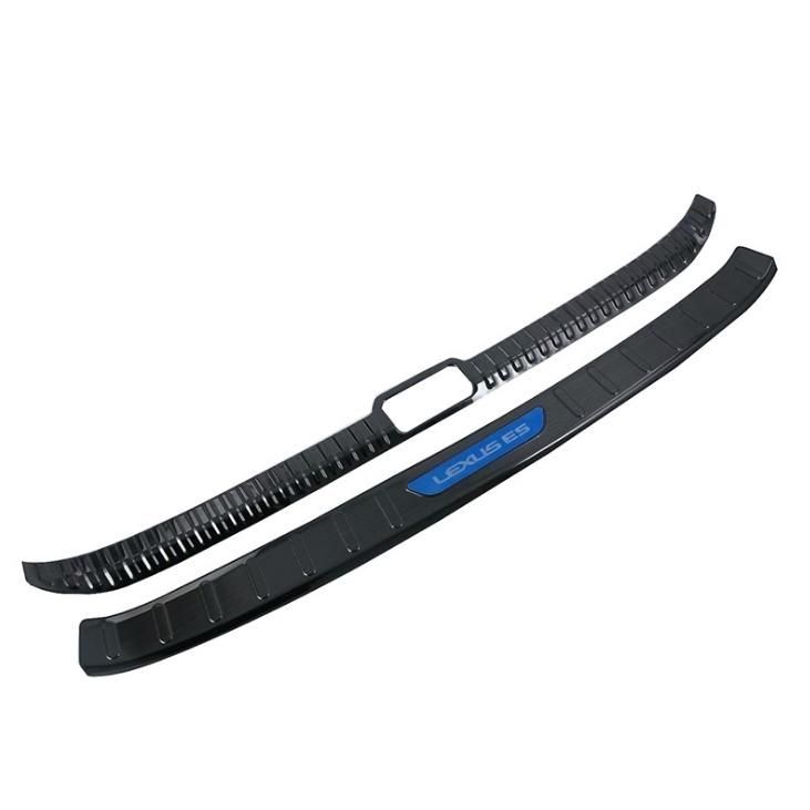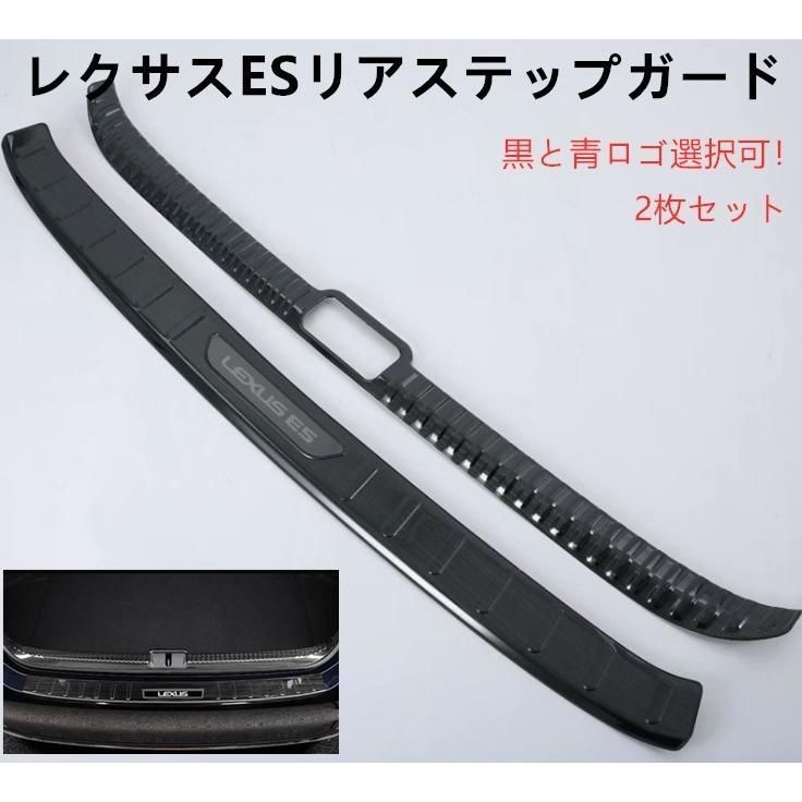 『ブラック本体-青文字』レクサスES200/250260/300H専用ラゲージスカッフプレート2枚セットステンレス製リアパンバーステップガード 青・黒ロゴ選択可!