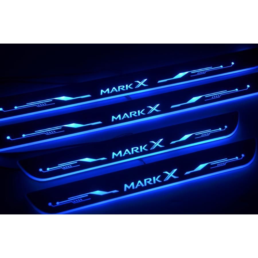 『ブルー』TOYOTA(トヨタ)マークX 130系 スカッフプレート LED流れるホワイト//ブルー発光前後4枚 左右セット スカッフイルミネーションプレート 保護ガード