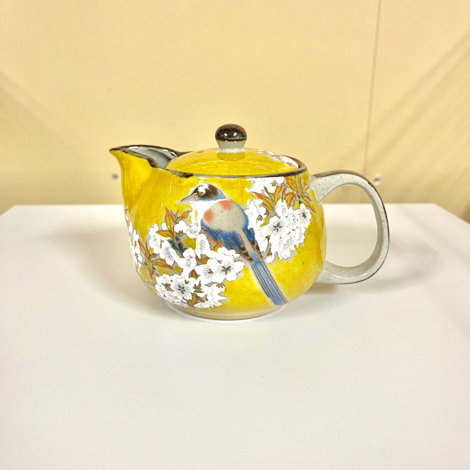 【九谷焼】ポット急須『吉田屋山桜に鳥』