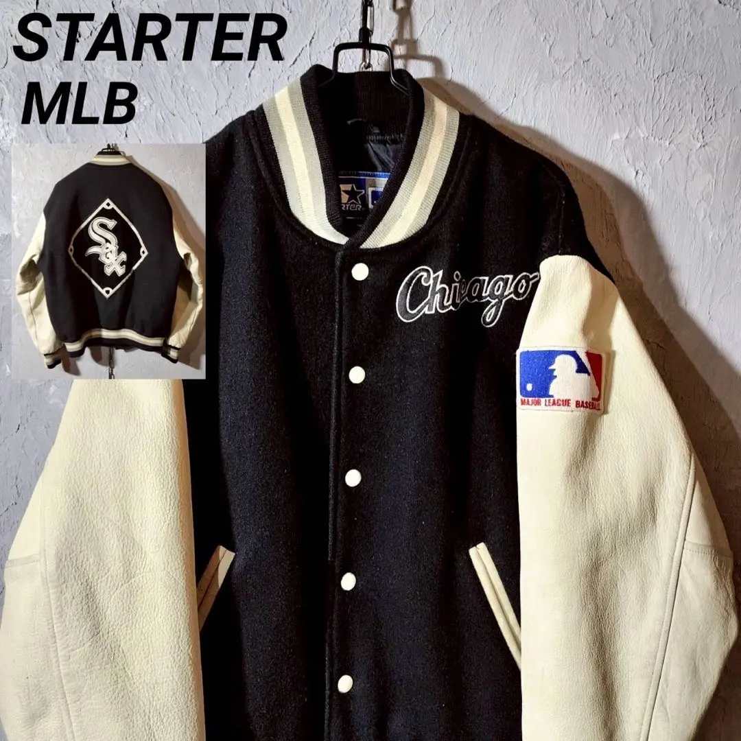 スターター ホワイトソックス スタジャン レザー袖 アードジャケット 90s