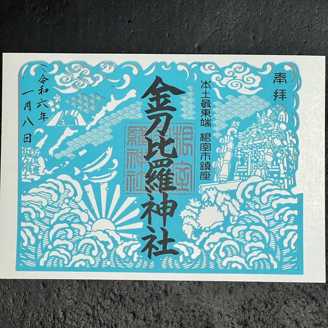 根室 金刀比羅神社 青色 切り絵 御朱印