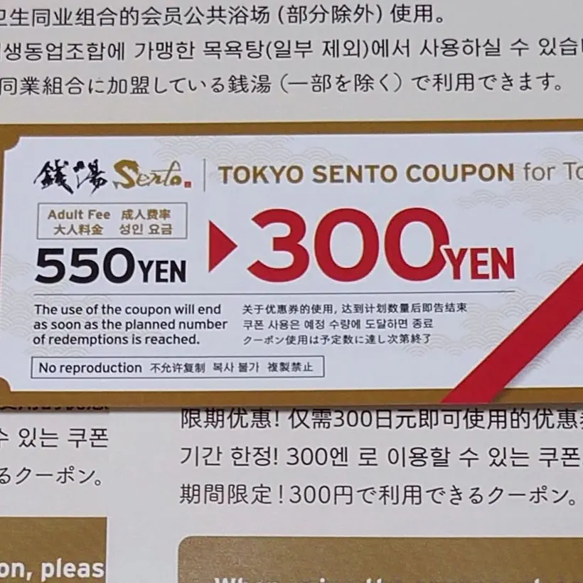 東京都内の銭湯割引券6枚 550円→300円 1500円お得