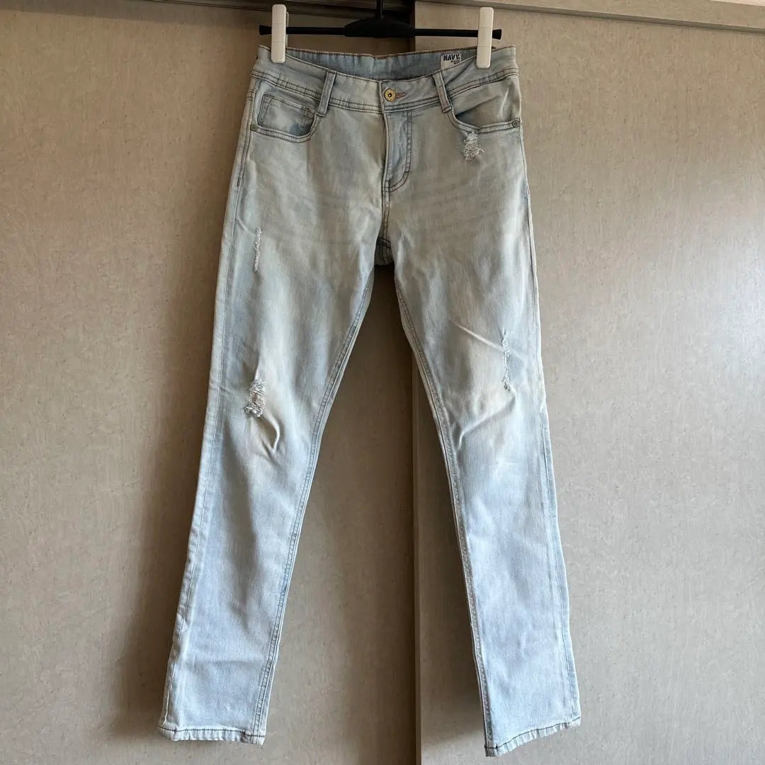 美品!メンズ 29インチ ライトブルー スキニーデニム ダメージ加工ジーンズ