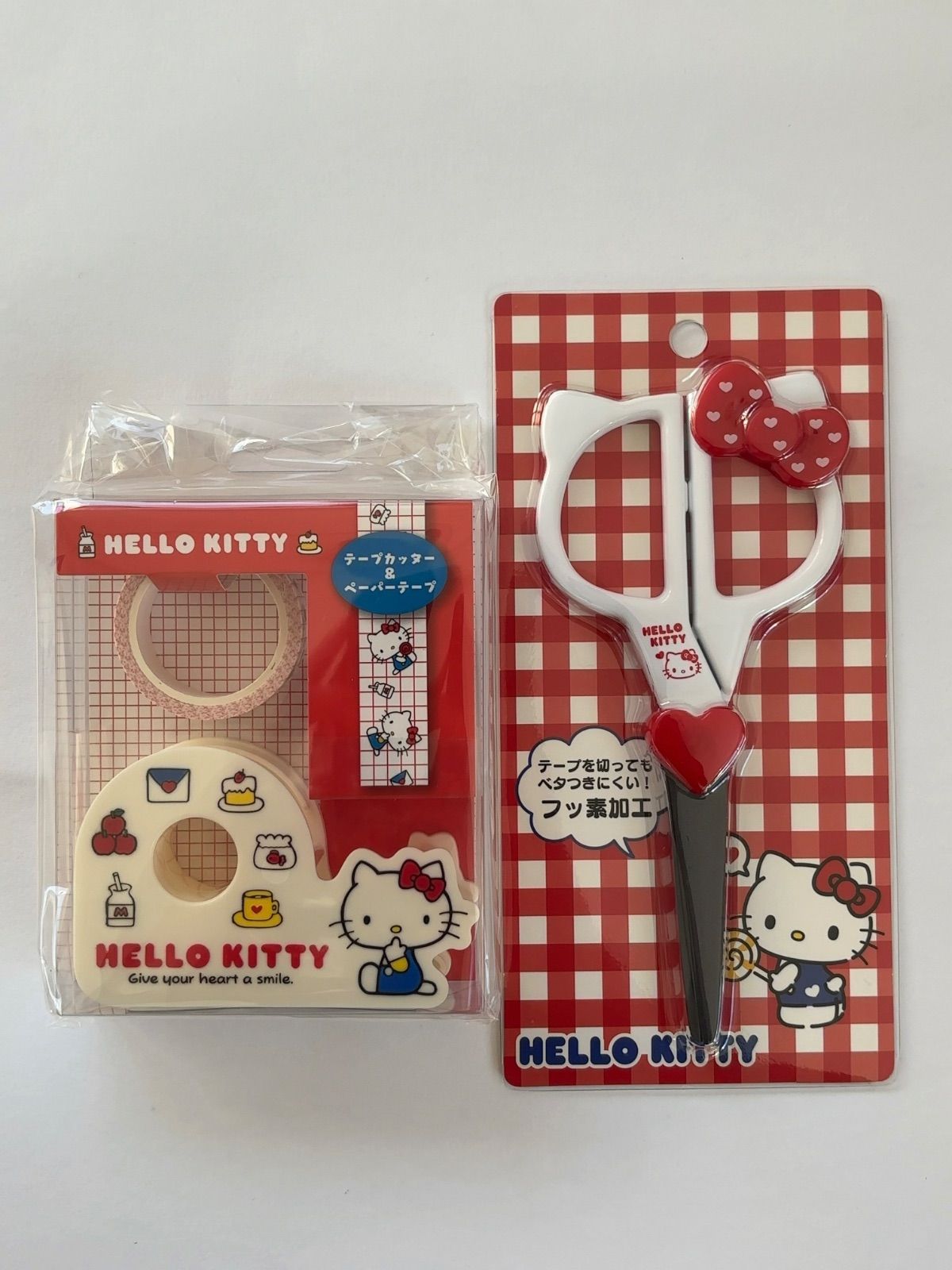 新品未開封 ハローキティ テープカッター&ペーパーテープとフェイス形ハサミ 2点セット