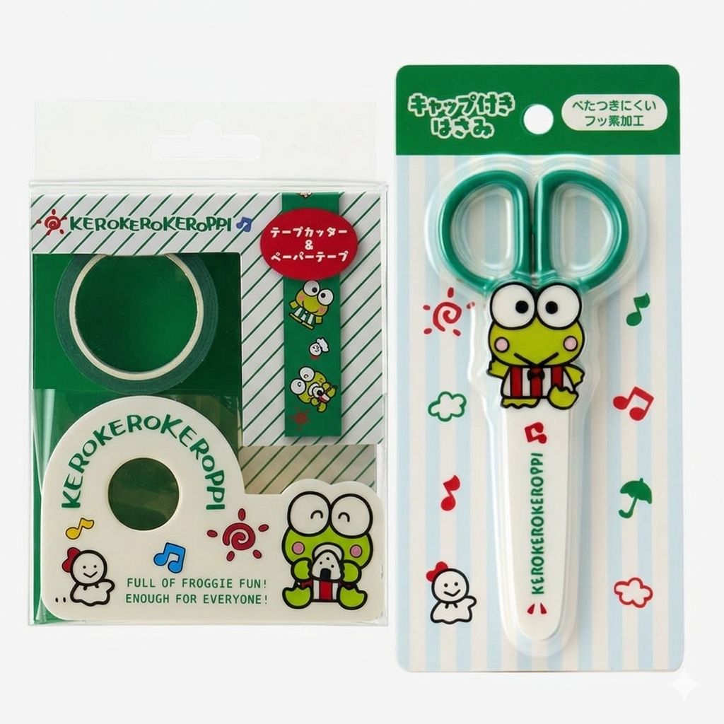 新品未開封 けろけろけろっぴ テープカッター&ペーパーテープとはさみ 2点セット