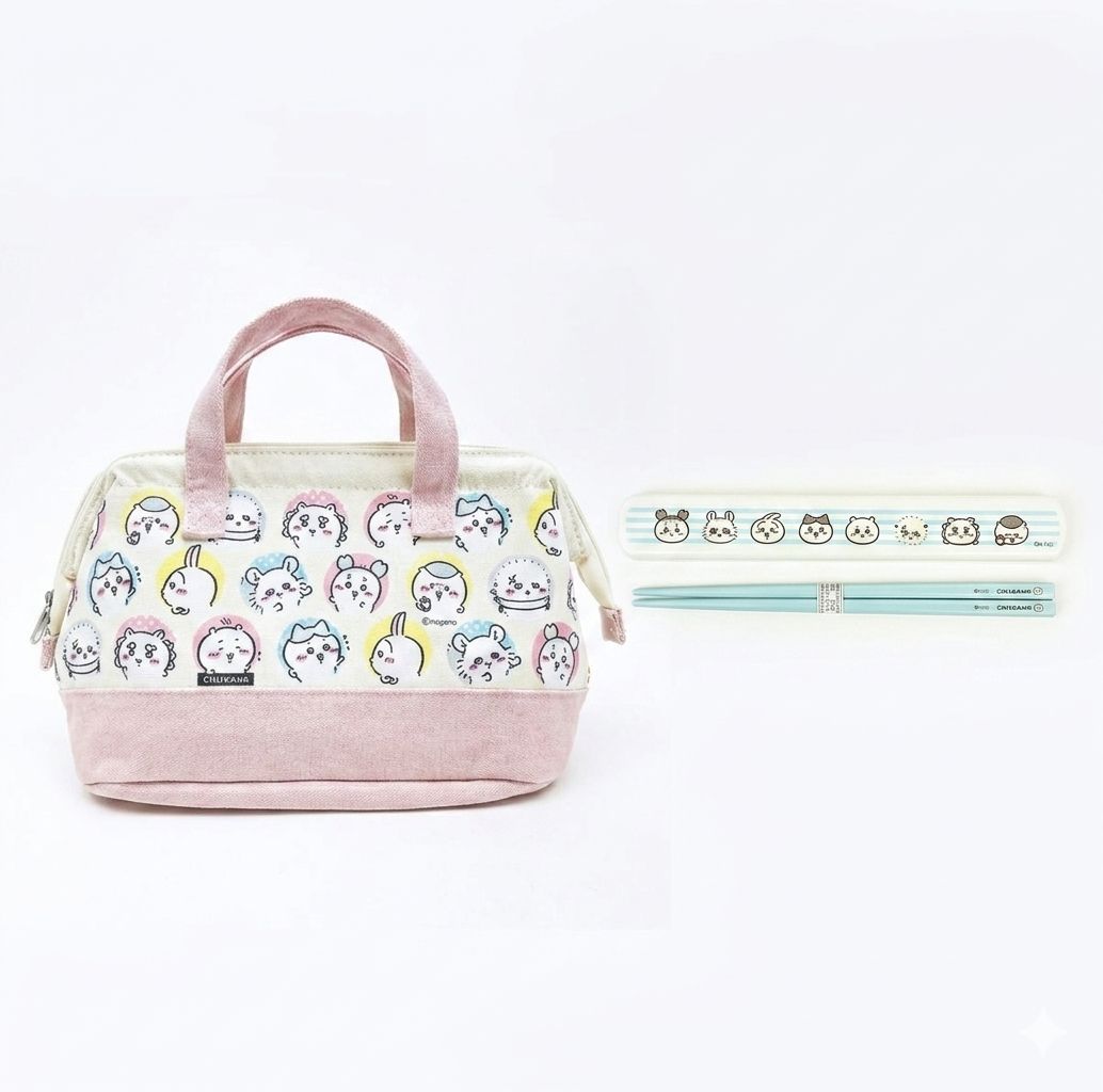 新品未開封 2026年新商品 ちいかわ ランチバッグ (がま口タイプ)と 『ちいかわ HS-16 引フタ箸箱セット CHIIKAWA なんか小さくてかわいいやつ 日本製』 セット