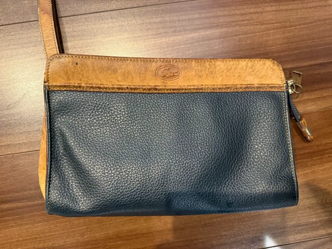 LACOSTE レザー クラッチバッグ ネイビー/ブラウン