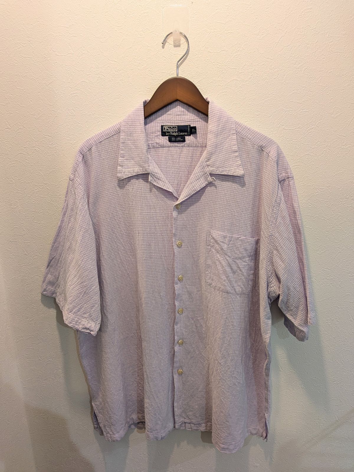 90s Polo by Ralph Lauren ポロバイラルフローレン シャツ オープンカラー リネンコットン 半袖 開襟 リネンコットン パープル チェック