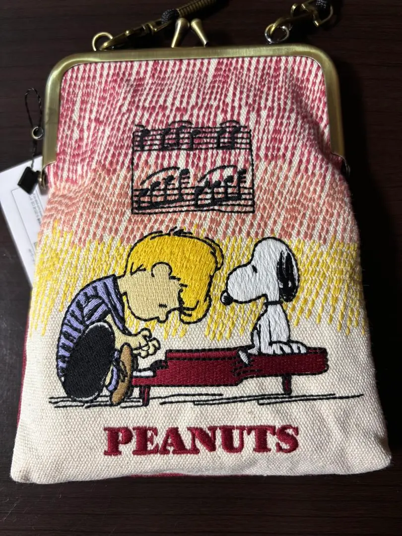 SNOOPY 畳刺繍縦型ペンポーチ がま口