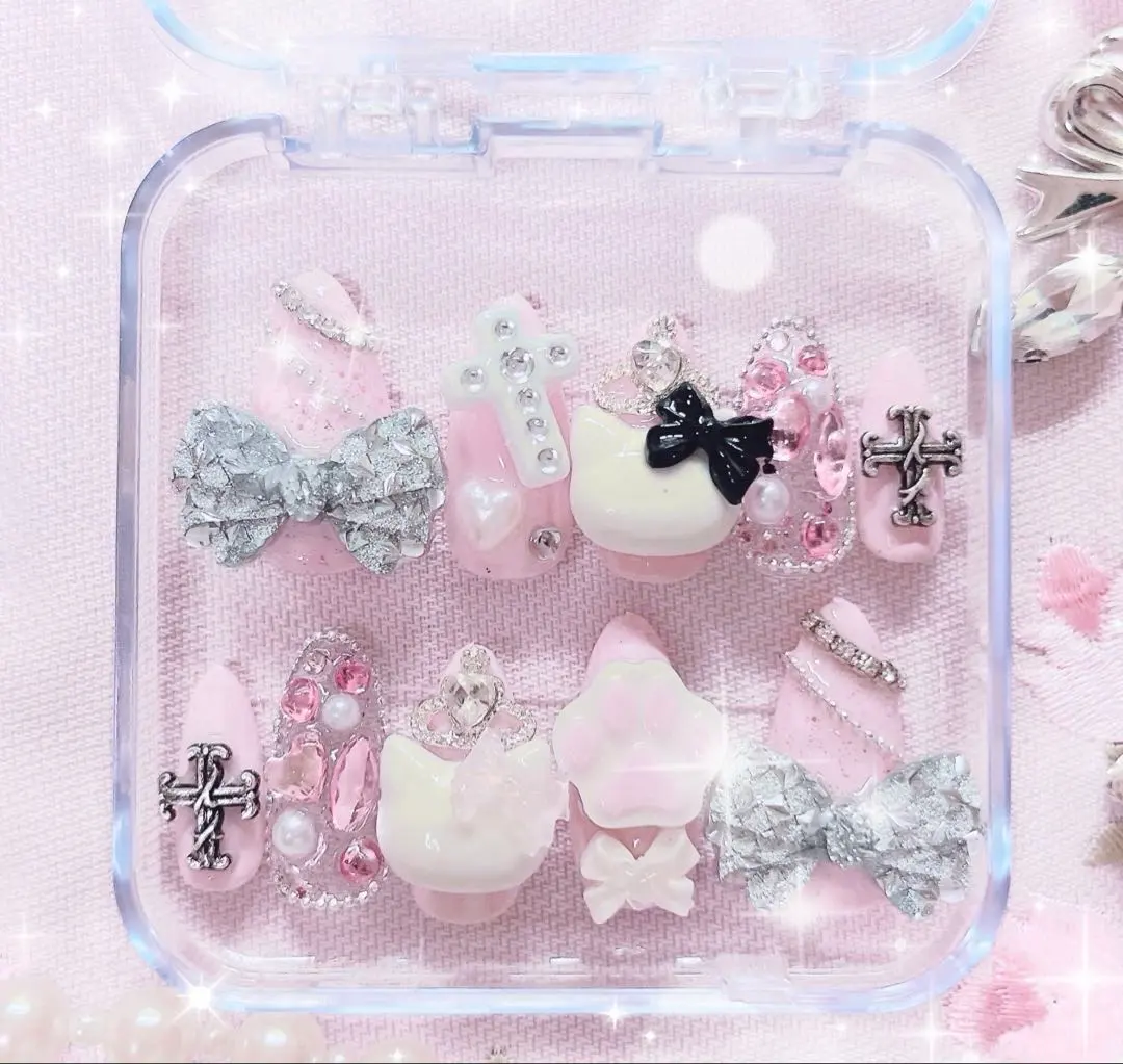 地雷系 量産型 姫系 ギャル ゴテゴテ 猫 りぼん ネイルチップ