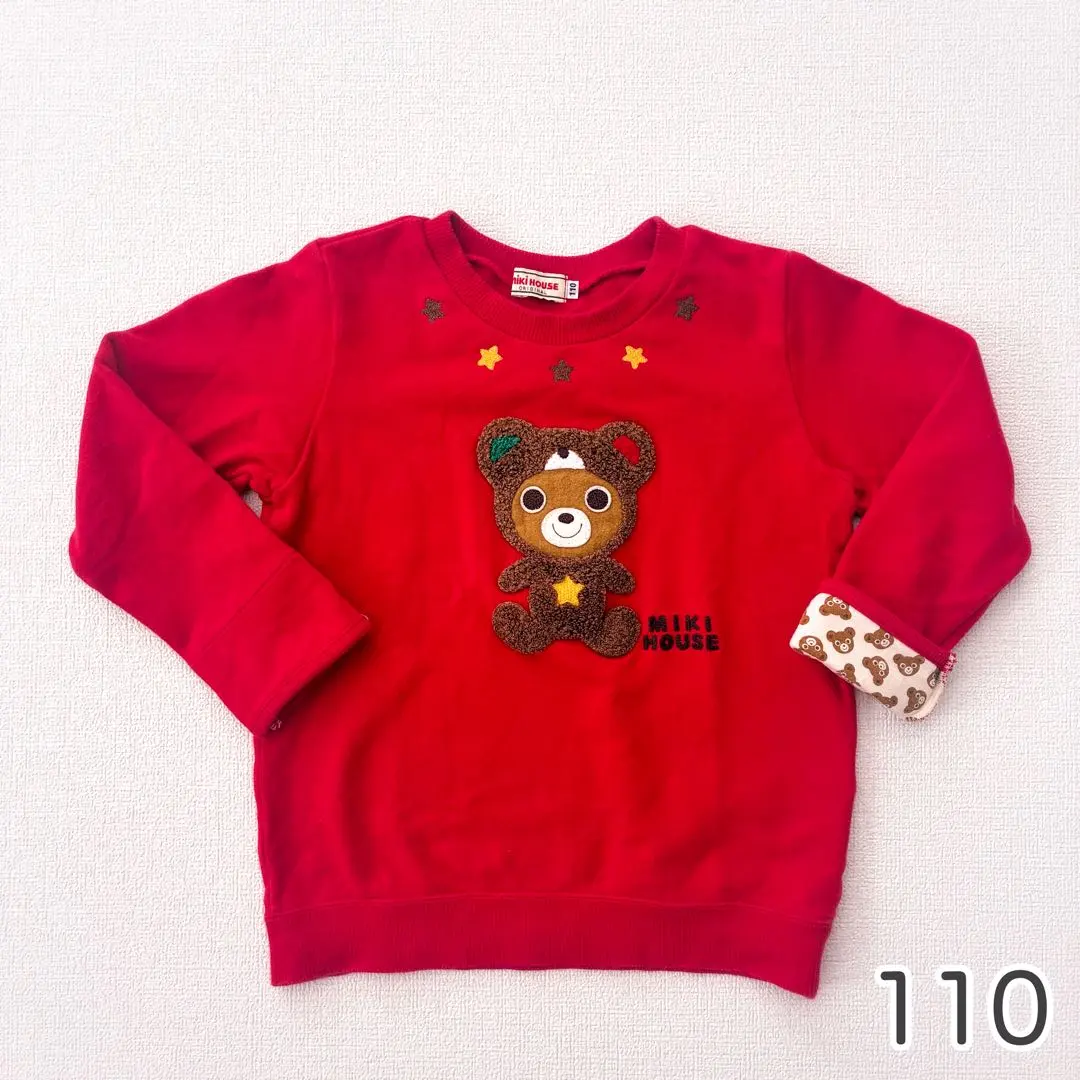 ミキハウス もこもこプッチー トレーナー 赤 くま アップリケ 110cm