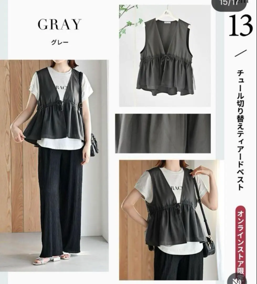新品 しまむら mumu チュール切り替えティアードベスト グレー LLサイズ