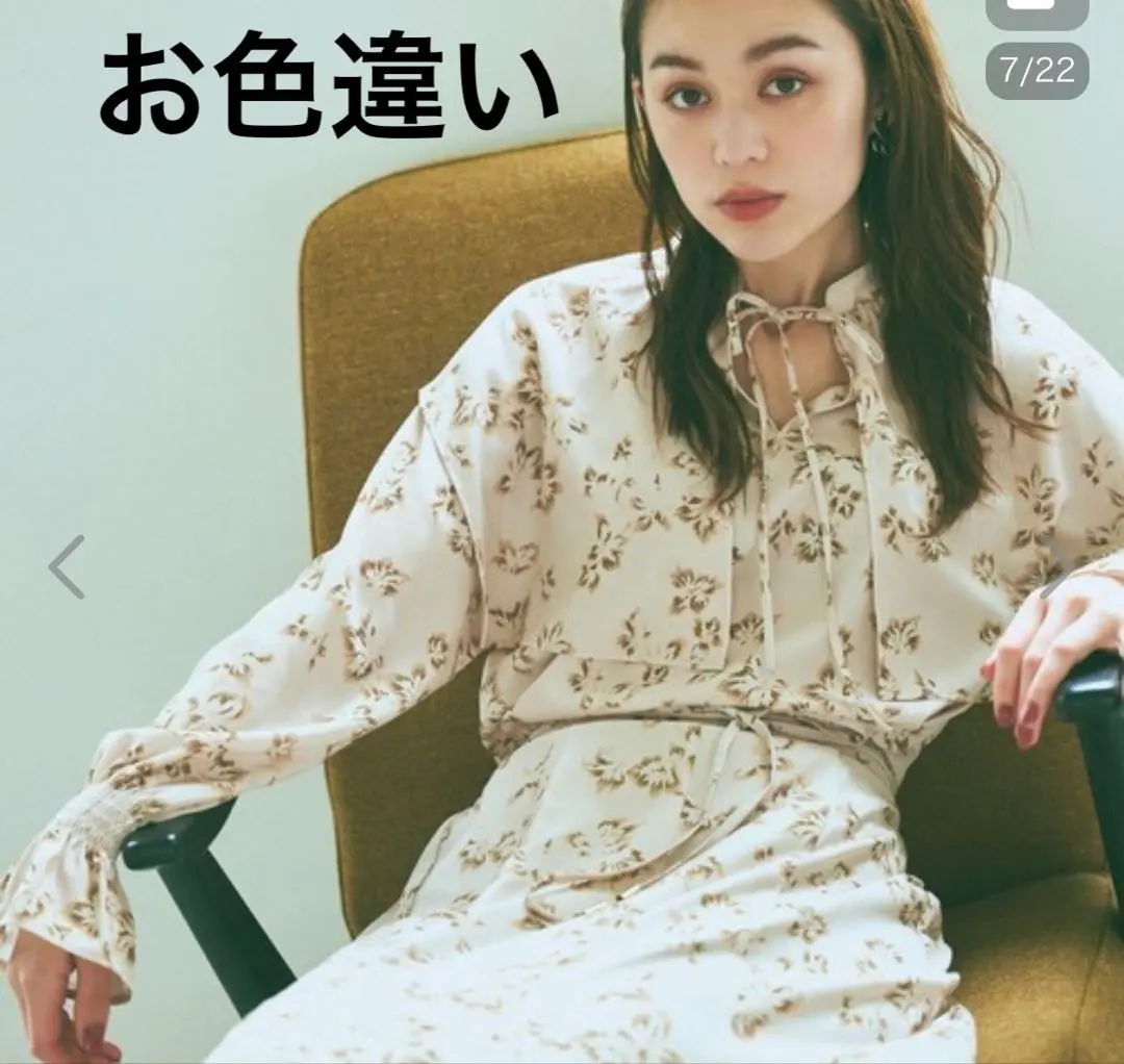 mysty woman フラワープリントブラウス フレアスカートセットアップ