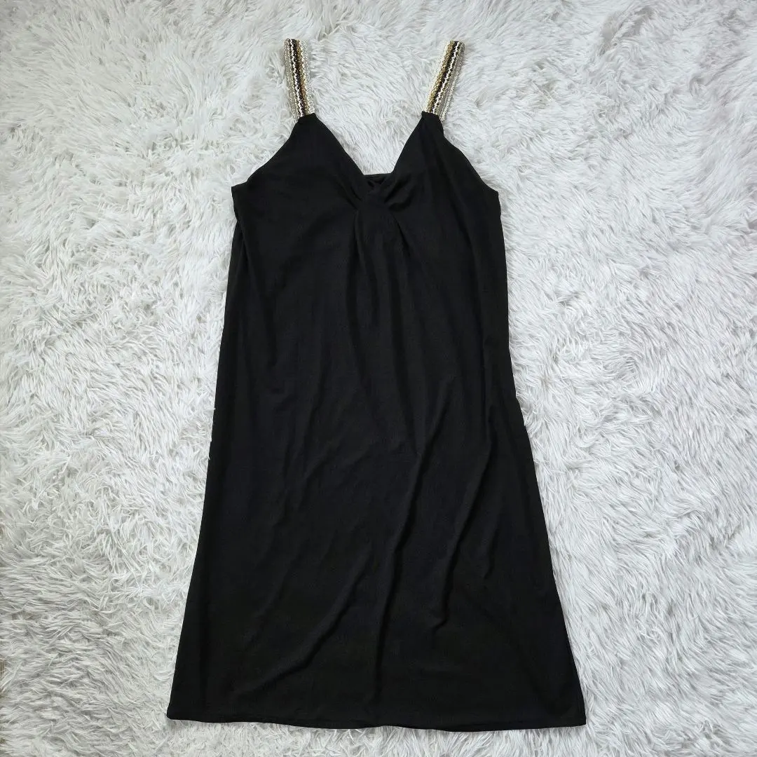ザラ ZARA キャミソールワンピース ドレス L 黒 ビーズストラップ 薄手